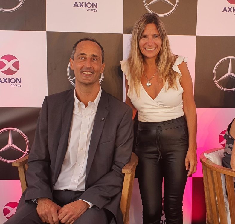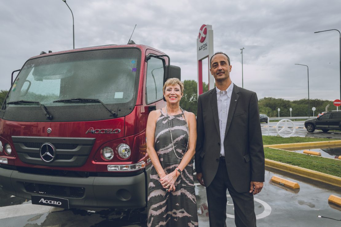 El evento tuvo lugar en la jornada de hoy, en la Estación AXION recientemente inaugurada, ubicada en el km 19 del Camino del Buen Ayre y contó con la presencia de Sandra Yachelini vice Presidenta Comercial y Marketing de Axion y de Raul Barcesat Presidente de Mercedes-Benz Camiones y Buses.