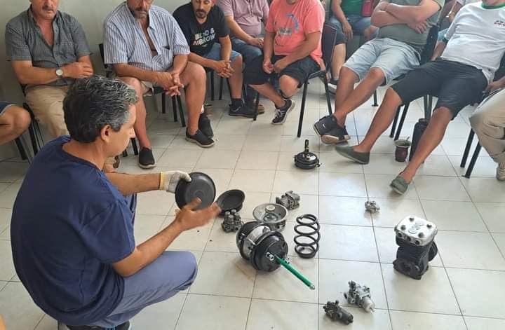 En ese contexto dialogó con EL BORNE, al término de la charla con modalidad de taller que se centró en varios aspectos integrales de la mecánica de camiones, “la charla fue más que interesante, a cupo completo, muy provechosa y productiva para los muchachos y para mí”, compartió, “lo que vimos fue la descripción y funcionamiento pieza por pieza de un circuito neumático en camiones, semirremolques y acoplados, mantenimiento del motor , cajas de velocidades y diferenciales”.