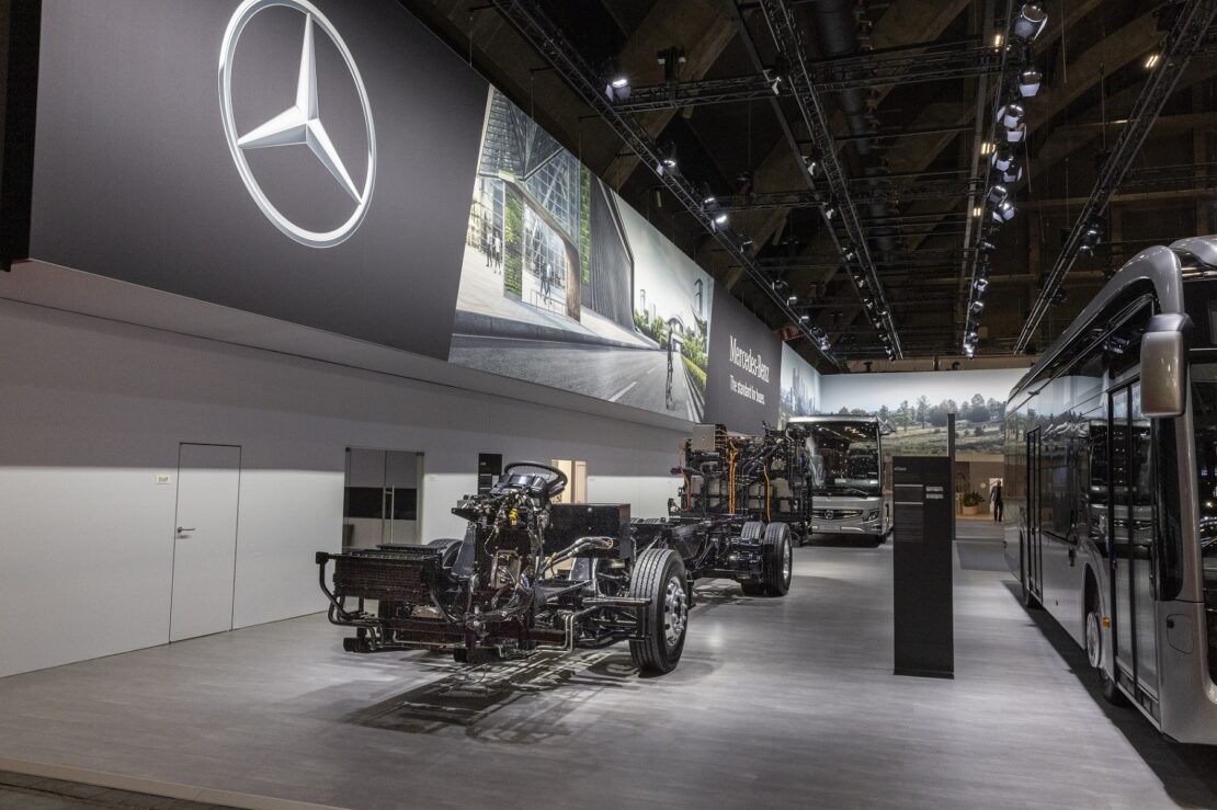 Entre los vehículos Mercedes-Benz en exposición en la feria Busworld, se encontraba el chasis del bus urbano eO500U, desarrollado en Brasil para la región. Además, la marca se presentó con el innovador eCitaro a pila de combustible y una variante más desarrollada del Tourismo, y el eCitaro NMC3 con baterías de iones de litio de tercera generación.