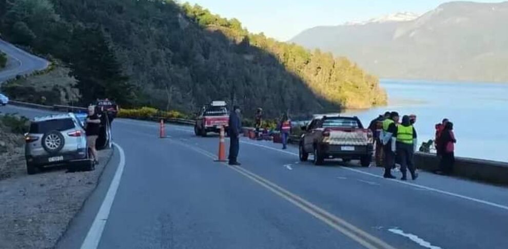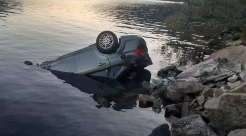 No se sabe qué le pasó, pero perdió el control de su rodado, derrapó y cayó por el barranco Desgraciadamente, el vehículo pasó por arriba del guardarraíl y terminó en el lago Lácar, semi hundido.