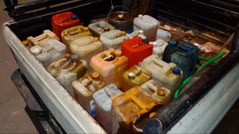 Y ampliaron: “en esa labor se detectaron siete bidones plásticos con capacidad de 10 litros, 14 bidones plásticos de 20 litros, todos ellos de gasoil y un trozo de manguera color verde con canilla plástica en uno de sus extremos, en una caja de pick up ut supra”.