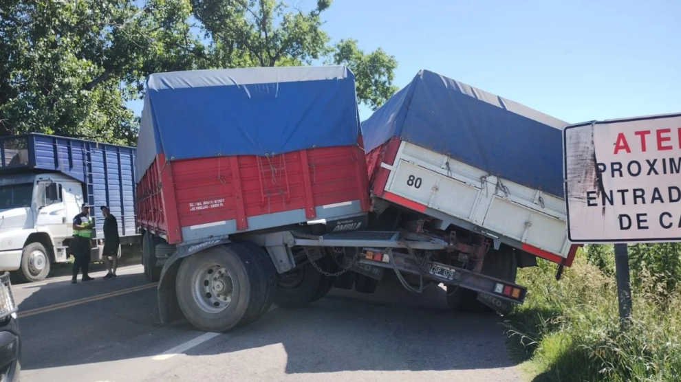 El incidente vial tuvo lugar en el kilómetro 160 de la Ruta Nacional N5 cerca de las 11 horas, involucrando a un camión con acoplado de la marca Iveco y un camión Mercedes Benz.