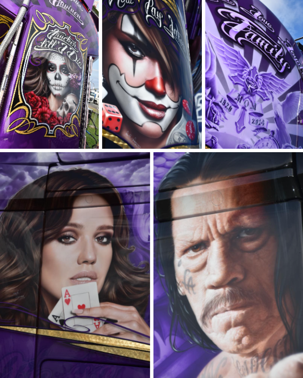 Todas las imágenes están pintadas con aerógrafo, utilizando diferentes técnicas para conseguir un aspecto superrealista. Los remolques fueron pintados en Lapua (Finlandia), en Ristimaa Customs, por Teemo Sarvela, Mika Peltola y Ristimaa, con un poco de ayuda de Simon Ahlsved. La tractora se pintó en Billackeringen i Mjölby (Suecia). Perttu pasó cerca de dos meses en este país para pintar con el aerógrafo los motivos de la tractora.
