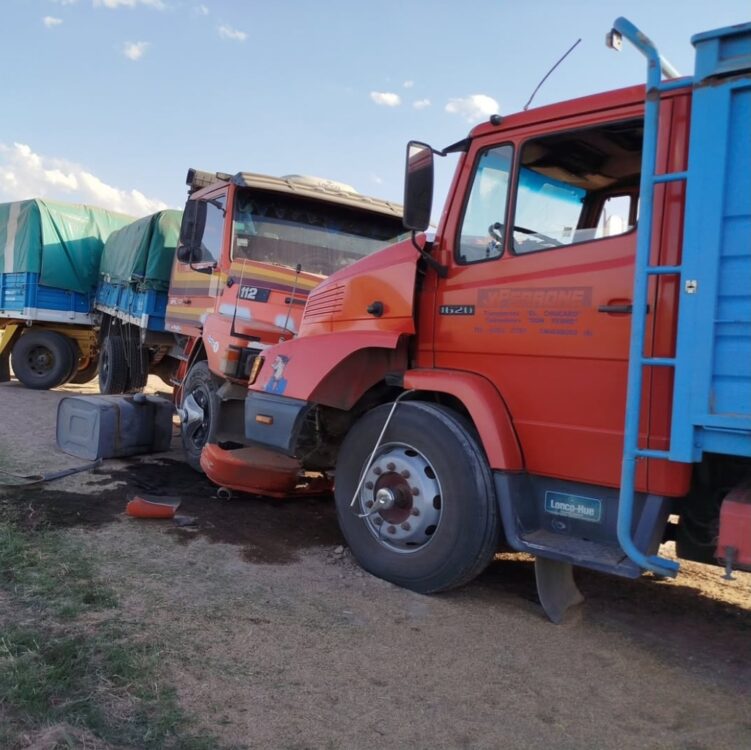 Este martes por la tarde, a las 17:22, se registró un violento accidente entre dos camiones en un camino rural que conecta Castilla con Suipacha, a unos 5 kilómetros de esta última localidad.