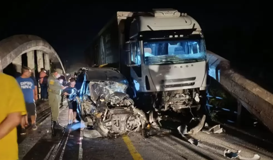 Por motivos que aún se investigan, los tres vehículos colisionaron, quedando atravesados en el puente y bloqueando completamente el tránsito. La camioneta resultó con graves daños, y sus dos ocupantes, junto con los conductores de ambos camiones, sufrieron lesiones.