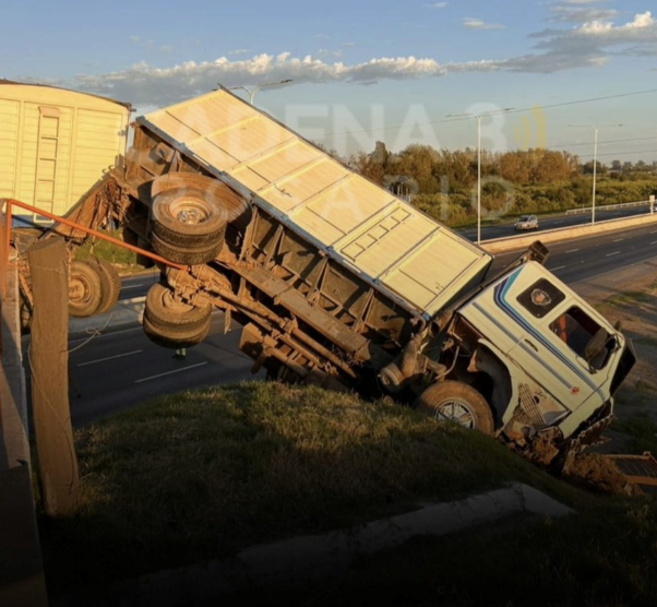 El accidente ocurrió alrededor de las 2.30 de la mañana. De acuerdo con el testimonio del propietario del vehículo, el chofer del camión, un hombre de 35 años, habría perdido el control tras tomar un pozo en la calzada, lo que provocó que se trabara la dirección. El rodado, que circulaba vacío desde Ricardone con destino a la zona portuaria de San Lorenzo, terminó impactando contra las vallas de contención y volcó sobre el puente, quedando parcialmente suspendido a una altura aproximada de ocho metros.