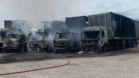 Un feroz incendio consumió cinco camiones y sus semirremolques en un depósito de Bernal Oeste, generando una imponente columna de humo negro que pudo...