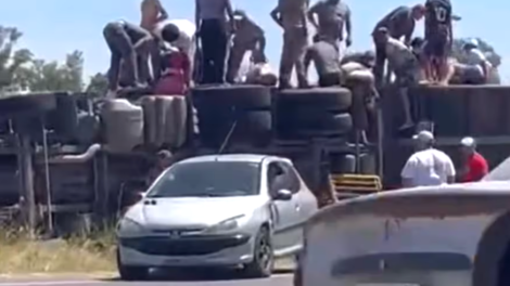 Un camión que transportaba 75 animales volcó en la Ruta 8, entre Arrecifes y Capitán Sarmiento, provincia de Buenos Aires, en el carril hacia Pilar...
