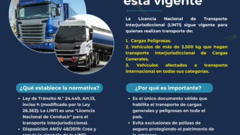 Se recuerda que la Licencia Nacional de Transporte Interjurisdiccional (LiNTI) es obligatoria para todas las personas que realicen transporte de...