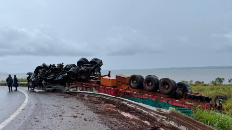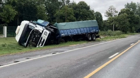 En la mañana del lunes, un camión Mercedes Benz modelo Atron, perteneciente a la empresa TRIBAL S.R.L., volcó en la rotonda del acceso sur, sobre la...