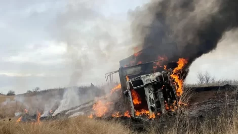 El chofer de un camión cargado con maní observó humo que comenzó a salir del interior de la cabina y al no poder detener la marcha optó por saltar...