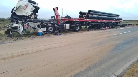 Un camión volcó y quedó atravesado sobre la calzada cuando transitaba por la ruta 2, en inmediaciones del kilómetro 386, frente al acceso...
