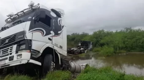 Uno de los vehículos de carga iba remolcando al otro. A bordo viajaban tres camioneros del vecino país. No hubo lesionados.
