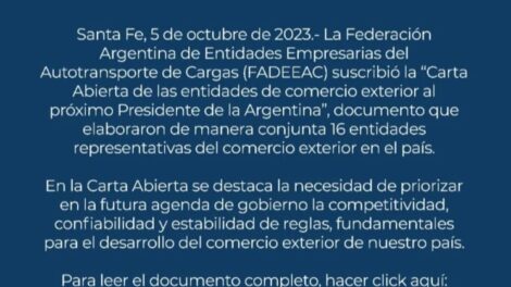 Las Entidades firmantes de esta carta abierta, representantes de la cadena de valor del comercio exterior nos dirigimos al próximo Presidente o...