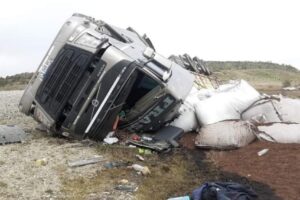 Esta madrugada en el kilómetro 2924 de la ruta nacional 3, a unos 27 kilómetros al norte de Tolhuin. Un camión Volvo de la empresa de transportes Fraser, tuvo...
