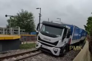 El vehículo llevaba papas desde la provincia de Tucumán. Se encuentra trabado en la estación Libertad, en el partido de Merlo, hace casi 48 horas.